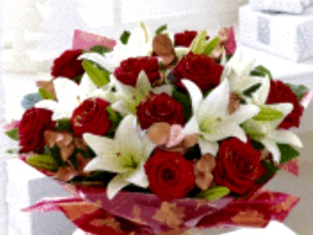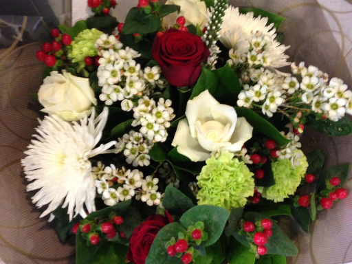 Red Roses,White Roses,Veronica,Wax Flower,Carnations,Blooms,Hypericum & Mixed Christmas Foliage